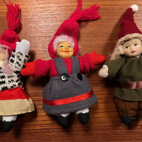JUL. Håndlavede Nisser på ”diamant”. 2 stk. samlet. Vejer 20g.