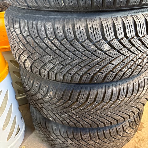 5x114.3 ET 50 stålfælge med vinterdæk fra Dasia Duster. Dækkene er af mærket Nokian wr Suv4 i størrelse 215/65-16. Der er 5-6 mm på dækkene.