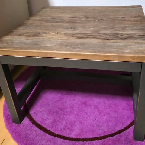 Hjørne bord. Ægte stenplade. Stel bronze malet træ.