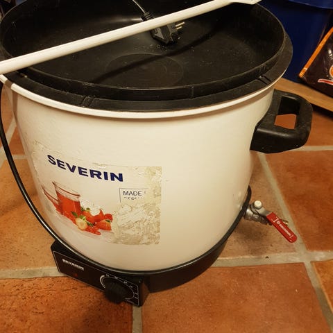 Elgryde 27l, mæskeindsats, låg, chiller, og en røreske.