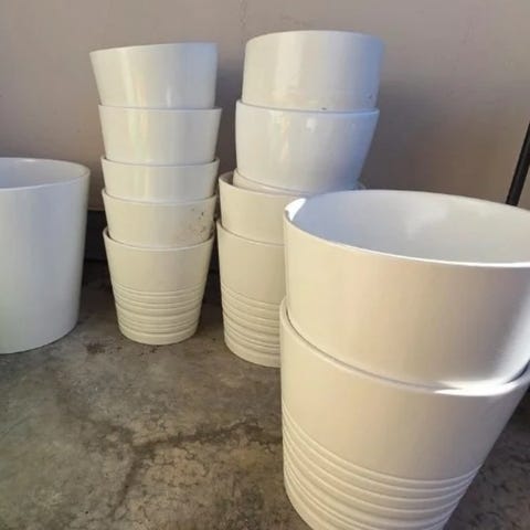 To urtepotter skal gives væk. Planten er allerede taget ud af potten, og potten er klar til afhentning :)