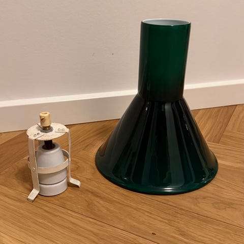 Holmegaard P&T Pendel,model mini i hvid opalglas,monteret med ny sort stofledning.
