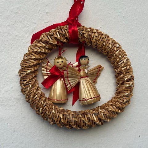 Smuk antik jule ophæng på 20 cm, med sølv kugler og blomster roset. Er i fin stand.