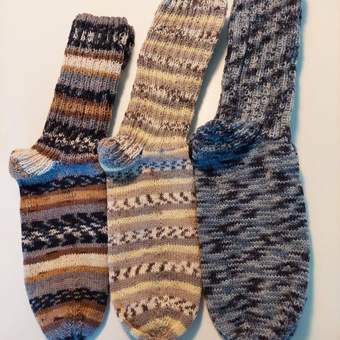 Varme uld sokker i skønne farver til de kølige dage. Materialet er 75% uld og 25% polyamid, mærke New Running og Sokkegarn. Minus tørretumbler og vaskes på 30 grader. Koster 90 kr pr par.