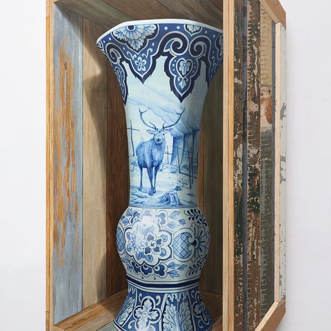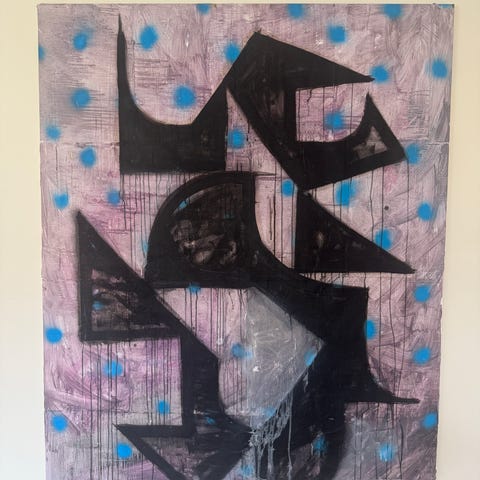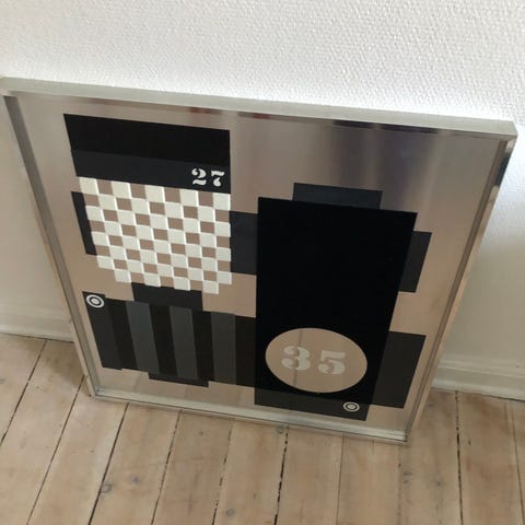 Karl Robin Monies mixed medie værk, men akryl på lærred og personer i sort papirklip.