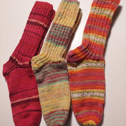 Varme uld sokker i skønne farver til de kølige dage. Materialet er 75% uld og 25% polyamid, mærke Bumbo og Hobbii. Minus tørretumbler og vaskes på 30 grader. Koster 80 kr pr par.