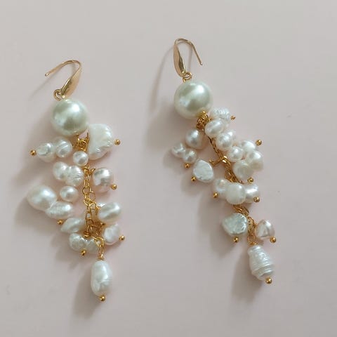 Nye øreringe med store ferskvandsperler.