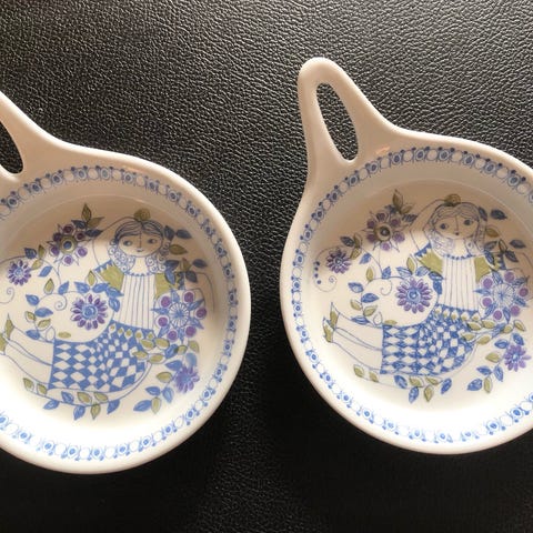 To kagetallerkner, to underkopper og to kaffekopper sælges samlet.