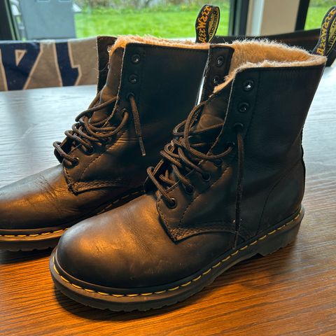 Jeg sælger mine Dr. Martens sko med pels fyld, da jeg desværre ikke får dem brugt. De er købt sidste år og har kun brugt dem få gange, så er næsten som nye. Har desværre ikke kvitteringen, men som man kan se på første billede, så står de til 1900kr. Original æske medfølger.