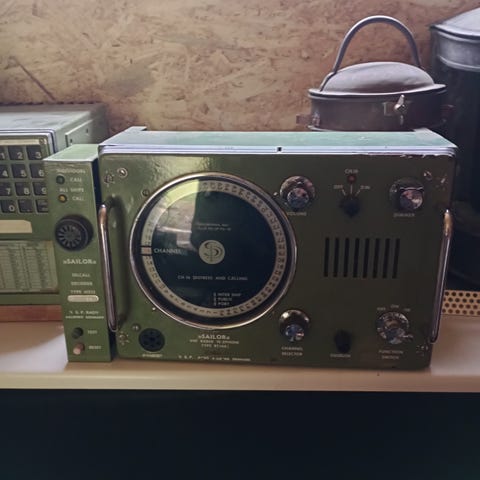 Raymarine VHF med separater enheder, VHF enhed, højtaler, håndsæt (brugt). Slidt ledning til håndsæt, men virker.