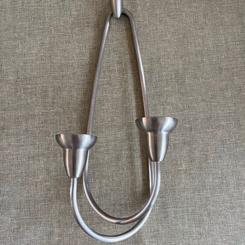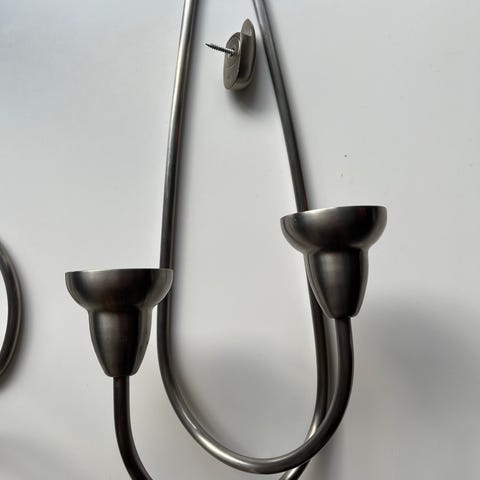 Georg Jensen væglampe lysestage designet til to lys. Fremstillet i børstet stål med en enkel og funktionel form. Velegnet til vægmontering og brug med standard stearinlys.