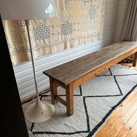 Super fantastisk langbord (l 250 b 79,5 h ca 77 cm) med bænk og to stole ( sædehøjde 48 b 47 ryg højde 95 cm. Altsammen i lækkert solidt fyrretræ med den smukkeste patina. Har været brugt til høstfester på Sjællands gods og har mere end 100 års historie. Solidt dansk snedkerhåndværk som holder for evigt. Smukt til sommerhus eller køkken-alrum. Kan leveres. Samlet 4800.