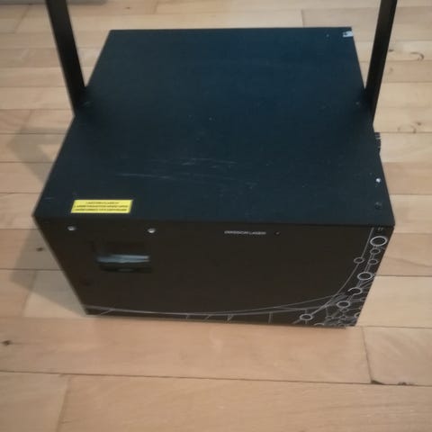 Grøn Laser ca. 30w. Virker som den skal, skal bare have nogen nye batterier. Bruger bare 2x AA batterier. Så vidt jeg forstår er den lovlig, bare den bliver brugt med fornuft selvfølgelig.