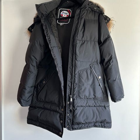Varm knælang Pajar vinterjakke. Hætte inkl. pels medfølger.