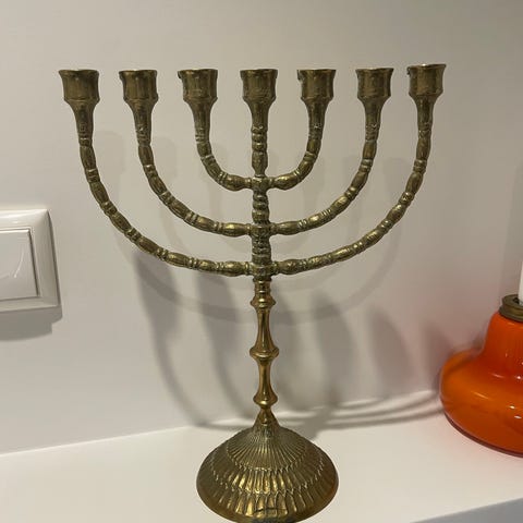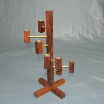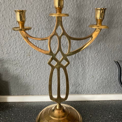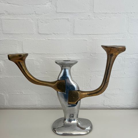 Flot velholdt 3 armet lysestage i messing ,40 cm i højde, designet af David Marshall..kan afhentes i Aabybro eller sendes med gls på købers regning..