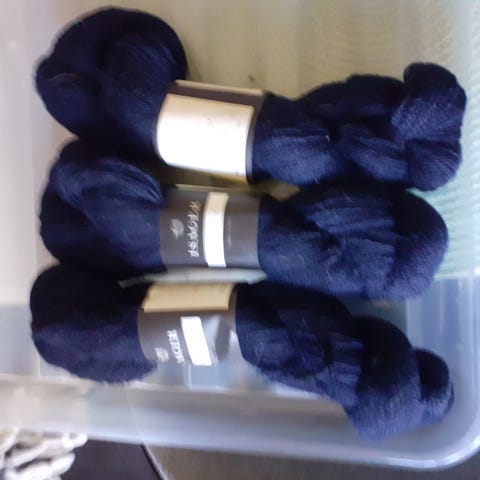 Det kamelfarvede er en tynd uldgarn velegnet til følgetråd (100g ukendt løbelængde)