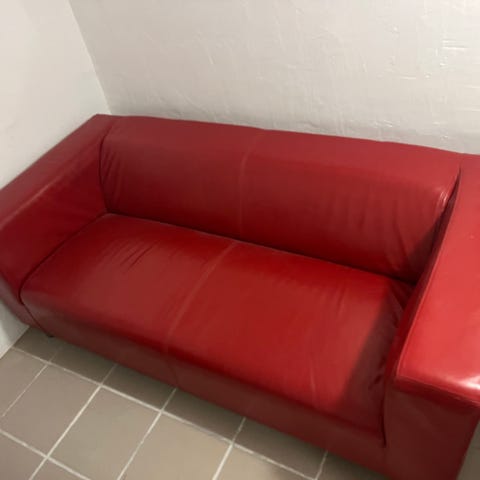Ikea Klippan i sort læder sofa. Skal afhentes sendt i næste uge. Det er noget stof der sidde løst user sofaen men kan sættes på meget nemt