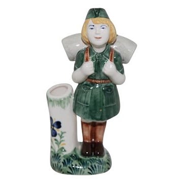 Aluminia Børnehjælpsdagsfigur, Grøn pigespejder fra 1962. Måler højde 17,5 cm. Hel og fin stand. Pris 5500kr.