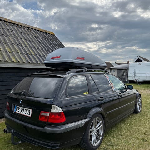 Original BMW tagboks Kan let påmonteres originale tagbøjler. Gætter på at den er i størrelsen 420 liter. Kan låses og åbnes til begge sider. Farven er koksgrå meget velholdt og aldrig skadet.