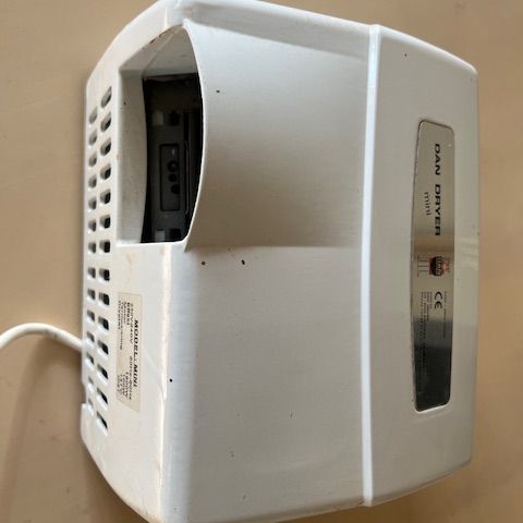 Har 4 stk. Dan Dryer håndtørrer med spejl/justerbar, samt 2 defekte med spejl (kan bruges til reservedele) og reservedele kan stadig købes.