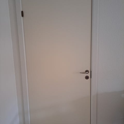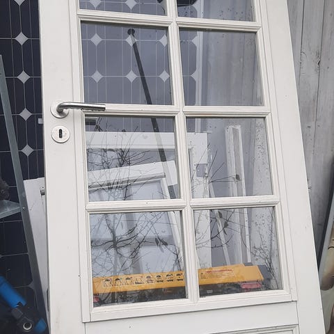Døren har en smule småskrammer hist og pist, men de kan nemt fixes med lidt reparationsmaling.