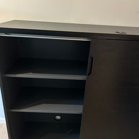 2 stk. vægreol med skydelåge. Det er en udgået model fra IKEA, men jeg kender ikke navnet. Højden er uden lågen. Hvis man regner lågen med er den 30 cm høj. Prisen er pr. stk