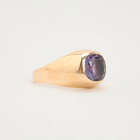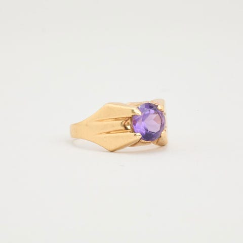 Signet ring i 14K guld med facetteret lyslilla sten, Str.