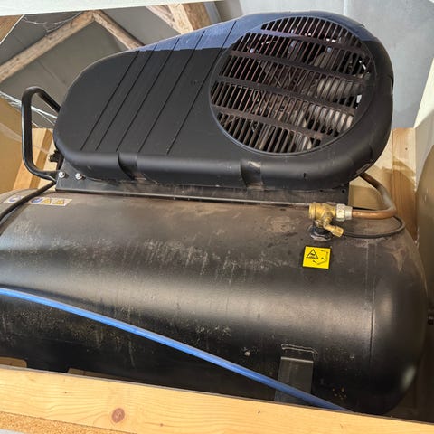 Fin Trykluft Kompressor 400v 3 hk fungere fint, med slangevinde mener ca 6 m