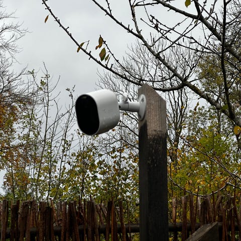 Arlo Wired Video Doorbell med kablet forbindelse. Produktet inkluderer dørklokke, monteringsbeslag, strømforsyning og installationsvejledning. Designet til at give videoovervågning ved indgangsdøre med mulighed for app-integration. Farve: sort og hvid.