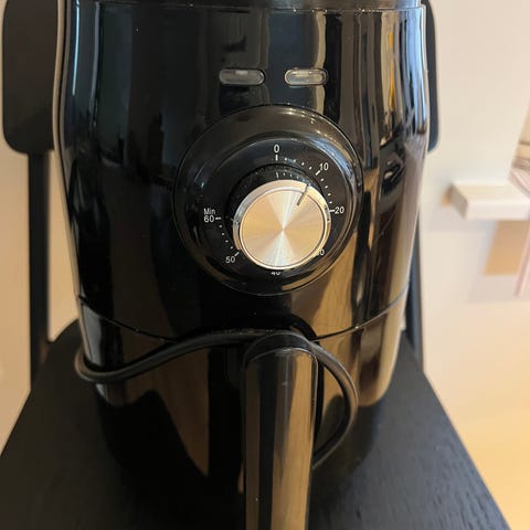 Epiq Model 6007004 Airfryer med en effekt på 1400 watt. Sort farve med justerbare temperatur- og tidsindstillinger. Designet til tilberedning af mad med varmluftsteknologi. Strømforsyning: 220-240V. Fremstillet i Kina.