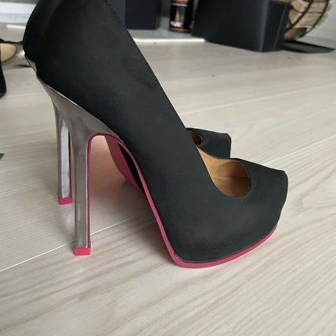 Pumps, str. 39, Bulldoxer, Sort, Ruskind, Næsten som ny, Sorte højhælet sko i ruskind med elastik hen over foden, så de sidder godt på foden.