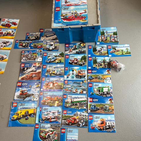 LEGO samling bestående af forskellige sæt og figurer i flere størrelser og farver. Indeholder diverse byggeklodser, køretøjer, helikoptere, og minifigurer. Sættene er velegnede til børn og samlere. Kommer i flere opbevaringskasser. Medfølger manualer til alle sæt / figurer inkluderet. Vær opmærksom! sælges som set kan forekomme at mangle få klodser. Villig til at forhandle om prisen.