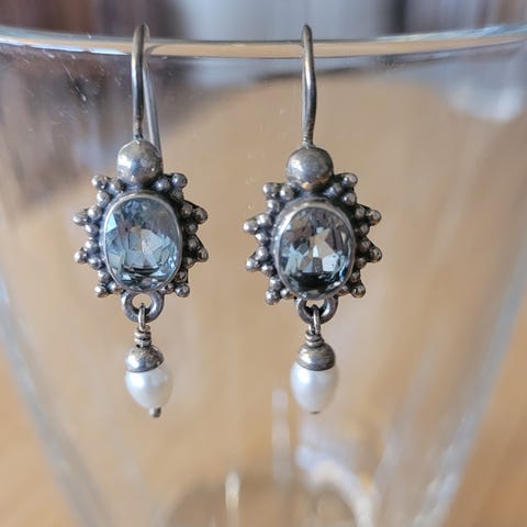 Sterling sølv med topaser. 4 cm lange inkl. hænger.