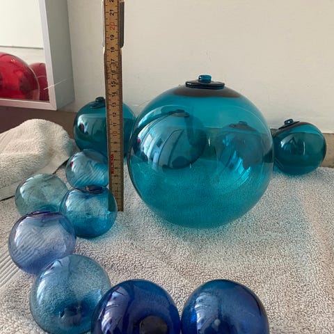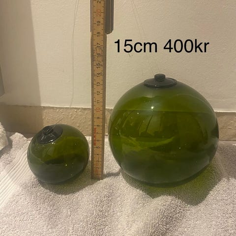 Vintage glaskugler / fiskerflåd – mundblæst grøn glas