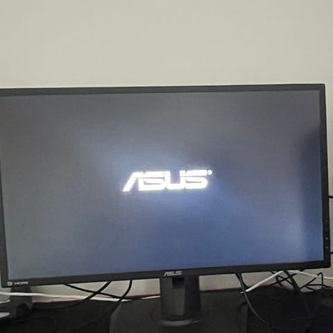 Skærmen er i helt fint stand og virker som den skal. Der er få ridser at finde på foden, men selve skærmen er som ny.