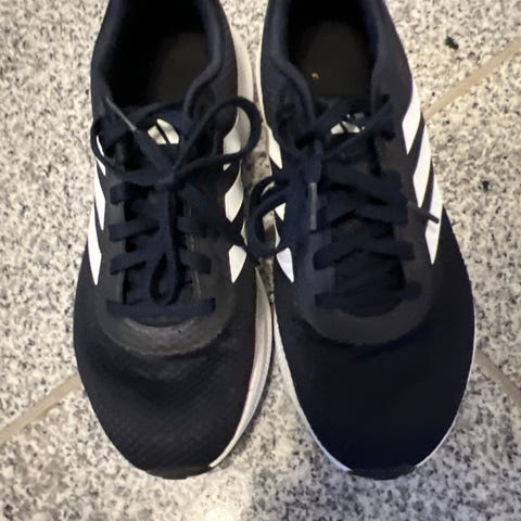 Adidas løb sko i størrelse 40, farven sort. Skoene er designet til fodbold og har en slidstærk sål med godt greb. Materialet er åndbart og velegnet til sport og daglig brug.