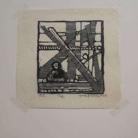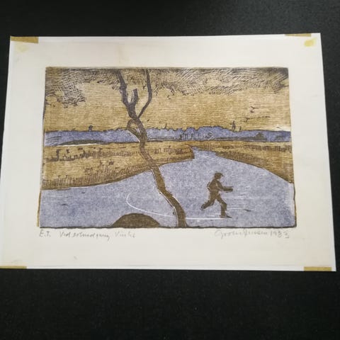 Smukt træsnit af kunstneren Jens Peter Groth Jensen.