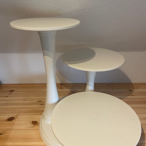 Afstanden mellem etagerne er ca. 20 cm og totalhøjden er ca. 140 cm.