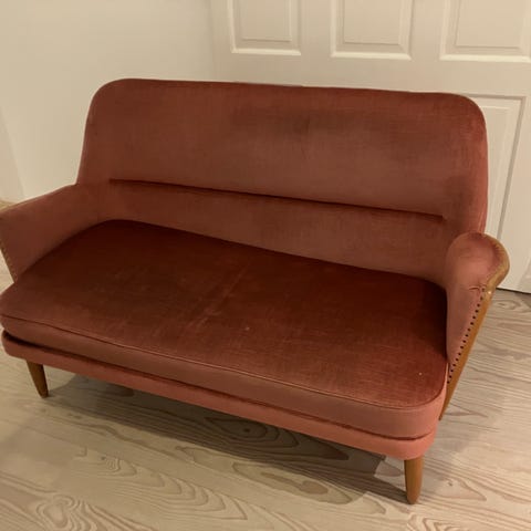 2 personers sofa med formstøbte hynder. God sidekomfort.