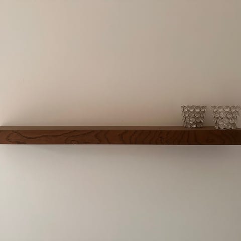 Fire svævehylder med eg overflade. Købt i Silvan for 400 kr. Er som ny.