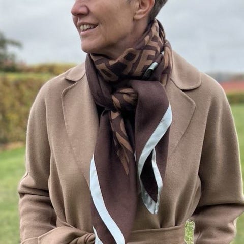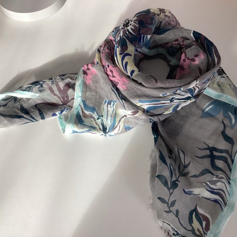Daniel la Forêt tørklæde i rød og blå farve med mønster. Tørklædet har et geometrisk design og er lavet af blødt materiale. Velegnet til brug som accessory til forskellige outfits.