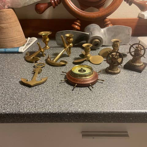 Lysestaker i messibg til at henge på vantet i skipet, eller bare stå. Usikker på alder, men de er gamle. 350kr