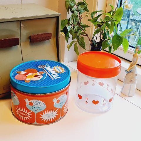 Original rund dåse i metal, perfekt til opbevaring, dekoration eller som samlerobjekt for dansk retrodesign.