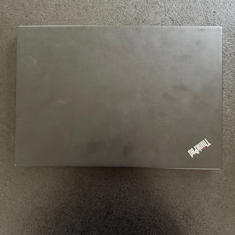 Lenovo ThinkPad laptop med tilhørende dockingstation og strømforsyning.
