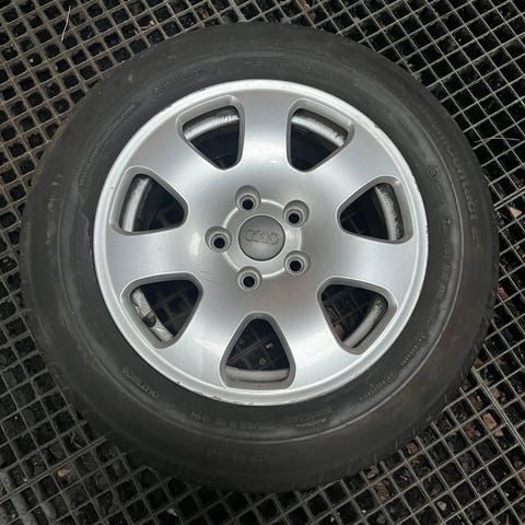 Ok fine alufælge uden dybe skrammer. Med halvslidte Nokian sommerdæk med 3 mm mønster.