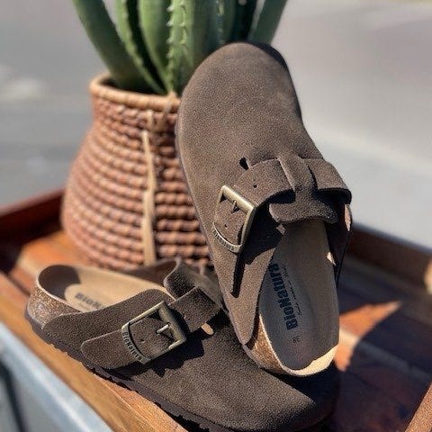 Skøn sandal på kilehæl fra BioNatura. Fremstillet i det blødeste nubuck skind i en mat sort farve.