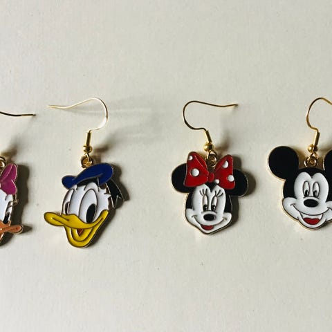 Walt Disney Lilo & Stitch Øreringe sæt - Helt nyt og bestående af flere par øreringe med motiver bl.a. fra Lilo & Stitch, herunder hængende charms og perler i blå, lyserød og hvid. Sættet indeholder både små studs og hængende øreringe med kæde og perler. Pris 150kr