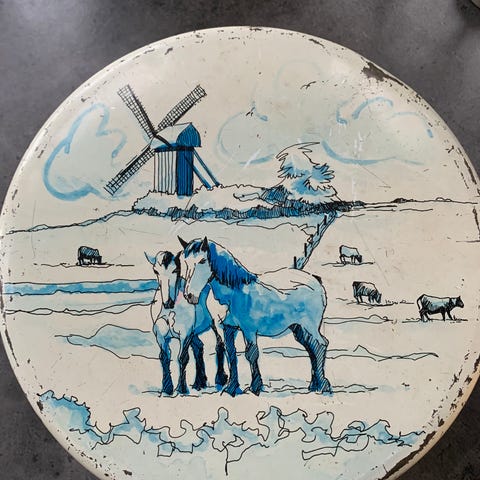 Diameter ca 18 cm og højde ca 7,5 cm. Med synlige brugsspor - se billeder