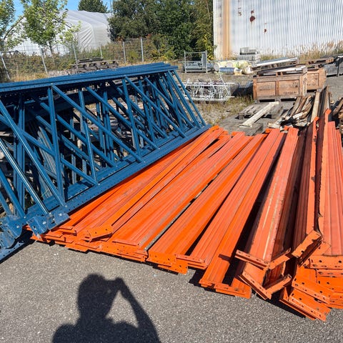 Sæt bestående af 6 metalbjælker i stål. Bjælkerne er velegnede til bygge- og konstruktionsformål, og de er placeret på jordoverflade. Materialet er stål, og de har en rektangulær profil.