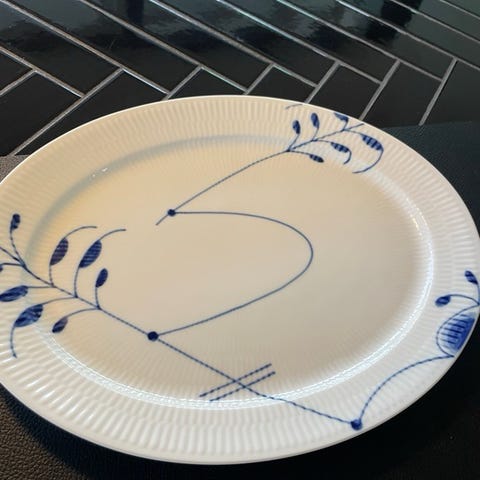 Lille Blå Mega Riflet Oval tallerken/Asietter/Fad på 23,5 cm